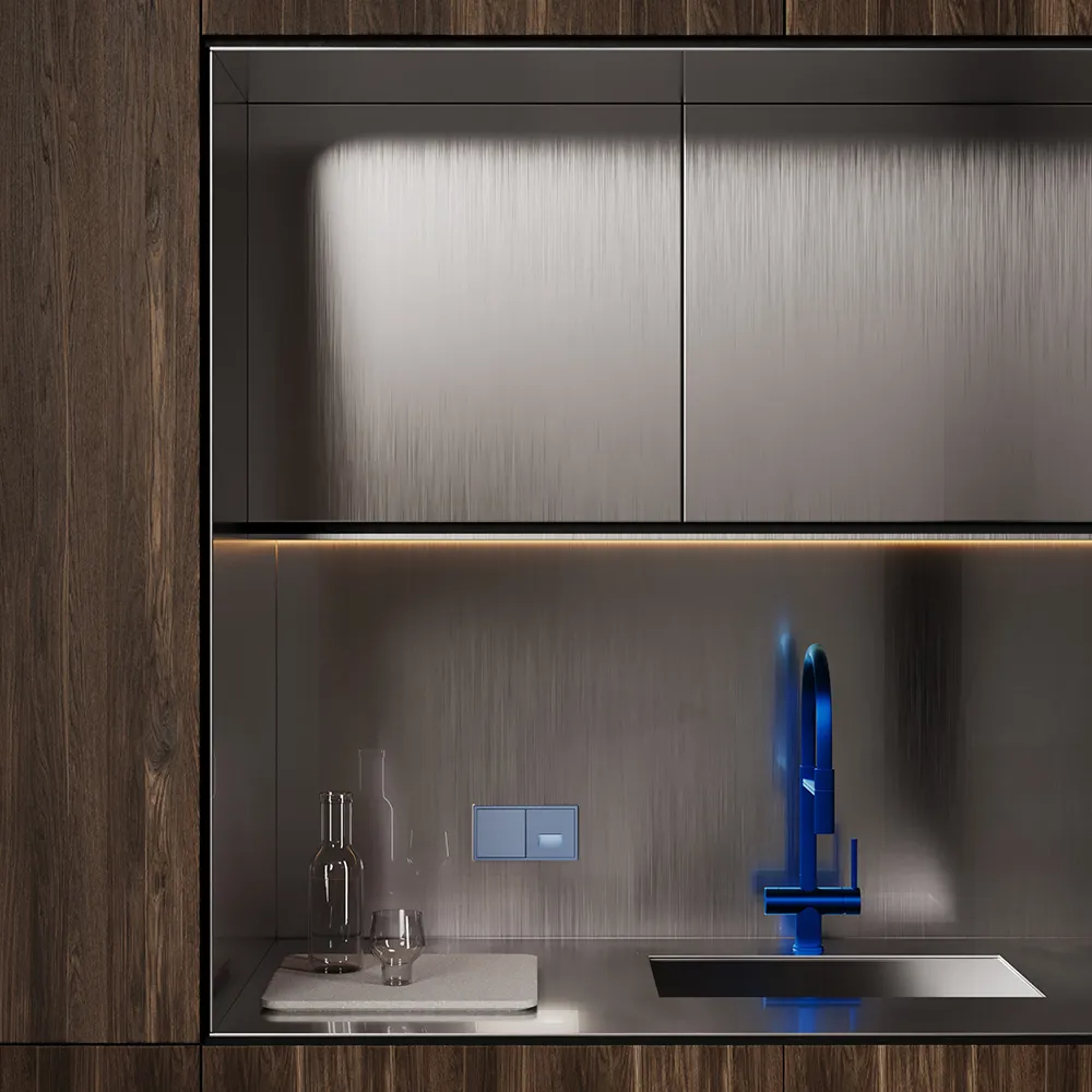 • Цвет «деним» — глубокий, мягкий оттенок с нейтрально-тёплым подтоном гармонично сочетает эстетику минимализма и ощущение домашнего тепла