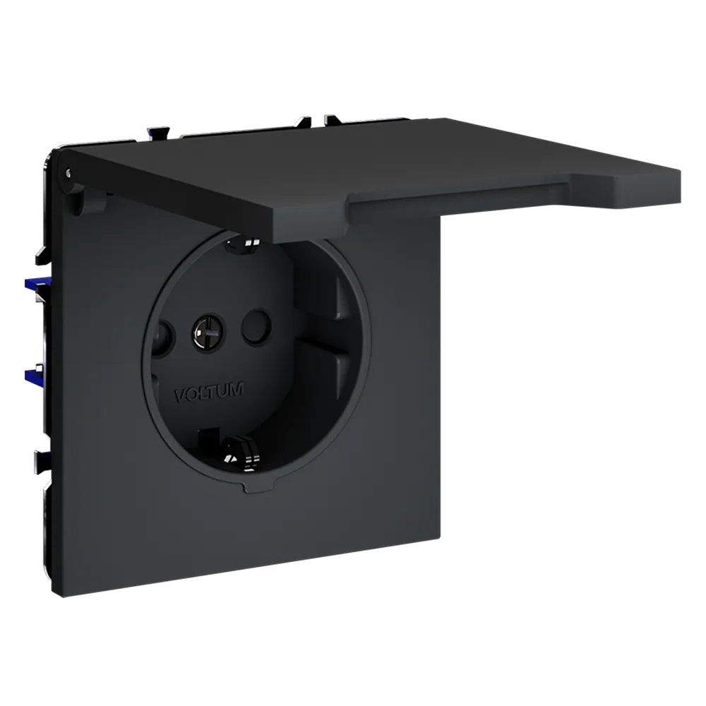 Розетка встраиваемая VOLTUM S70 с заземлением защитными шторками и крышкой 16А (графит)