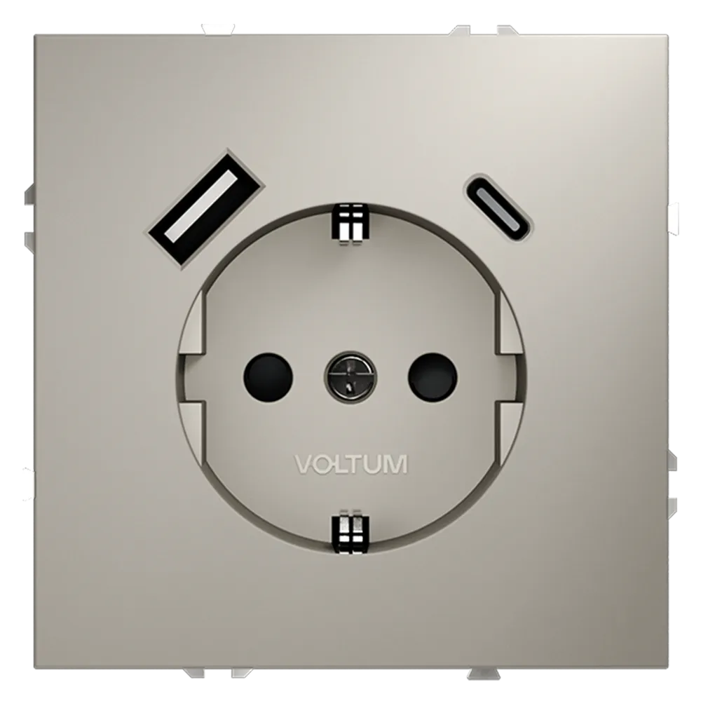 Розетка встраиваемая VOLTUM S70 с заземлением и защитными шторками 16А с USB А+С (кашемир)