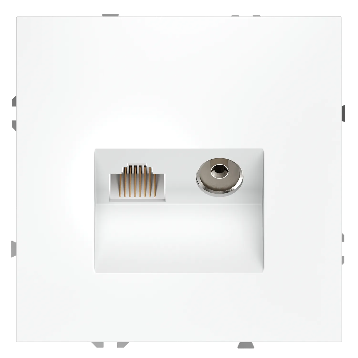 Присутствие гармонии. Розетка VOLTUM S70 TV+RJ45 в белом матовом исполнении становится невидимым проводником технологий: антенна и гигабитный интернет скрыты за фасадом сдержанной элегантности, где цифровая стабильность сливается с интерьером без единого блика.
