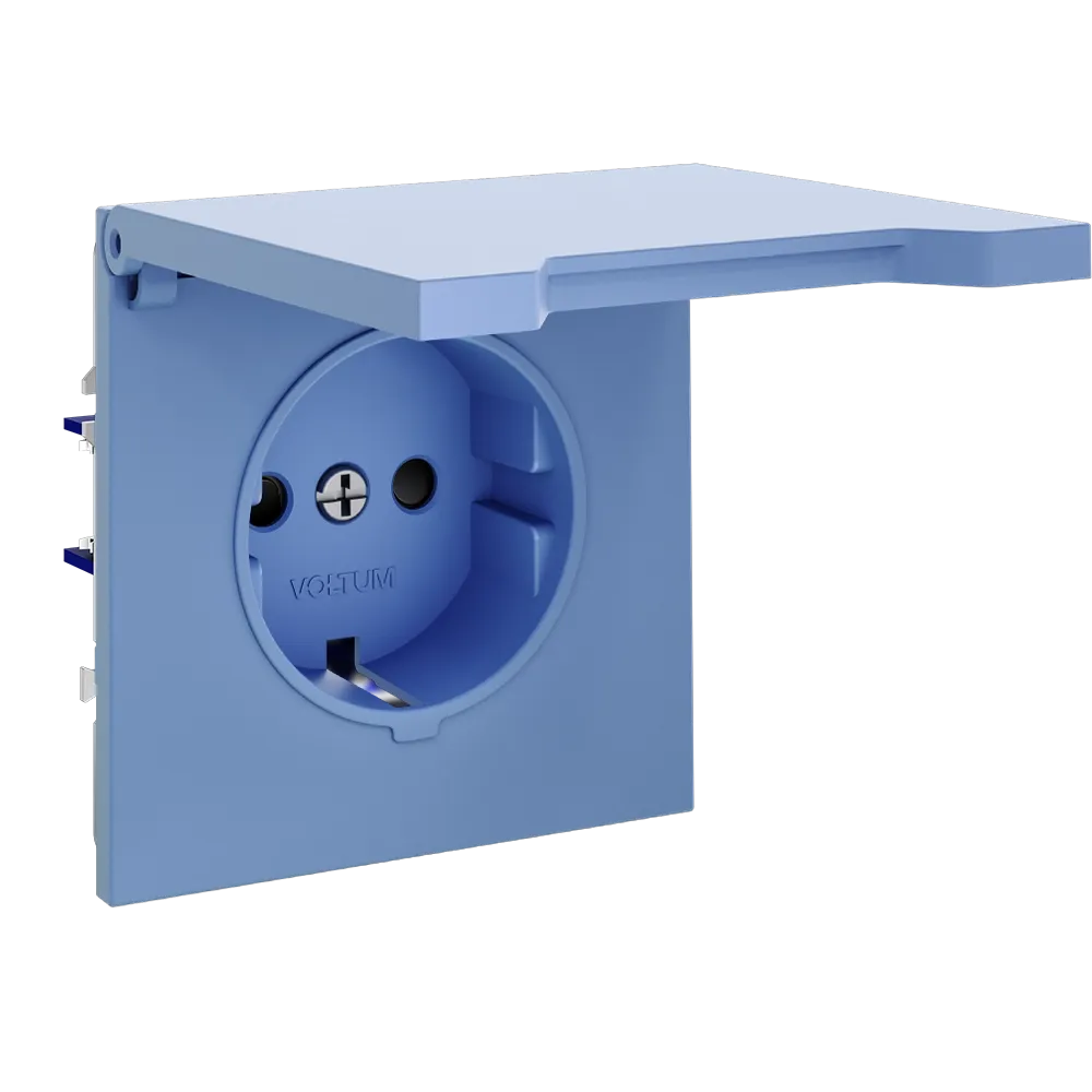 Розетка VOLTUM S70 с заземлением и защитными шторками и откидной крышкой  — это решение максимальной безопасности и эстетики для современного интерьера. Идеально подходит для детских комнат, ванных, прихожих, кухонь и уличных зон под навесом, где важна защита от пыли, брызг и случайного контакта с токоведущими частями.