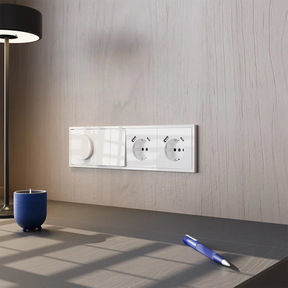 В таком интерьере даже электроустановочные изделия должны соответствовать общей эстетике — быть сдержанными, но изысканными. Идеальный выбор — оттенки серии S70: